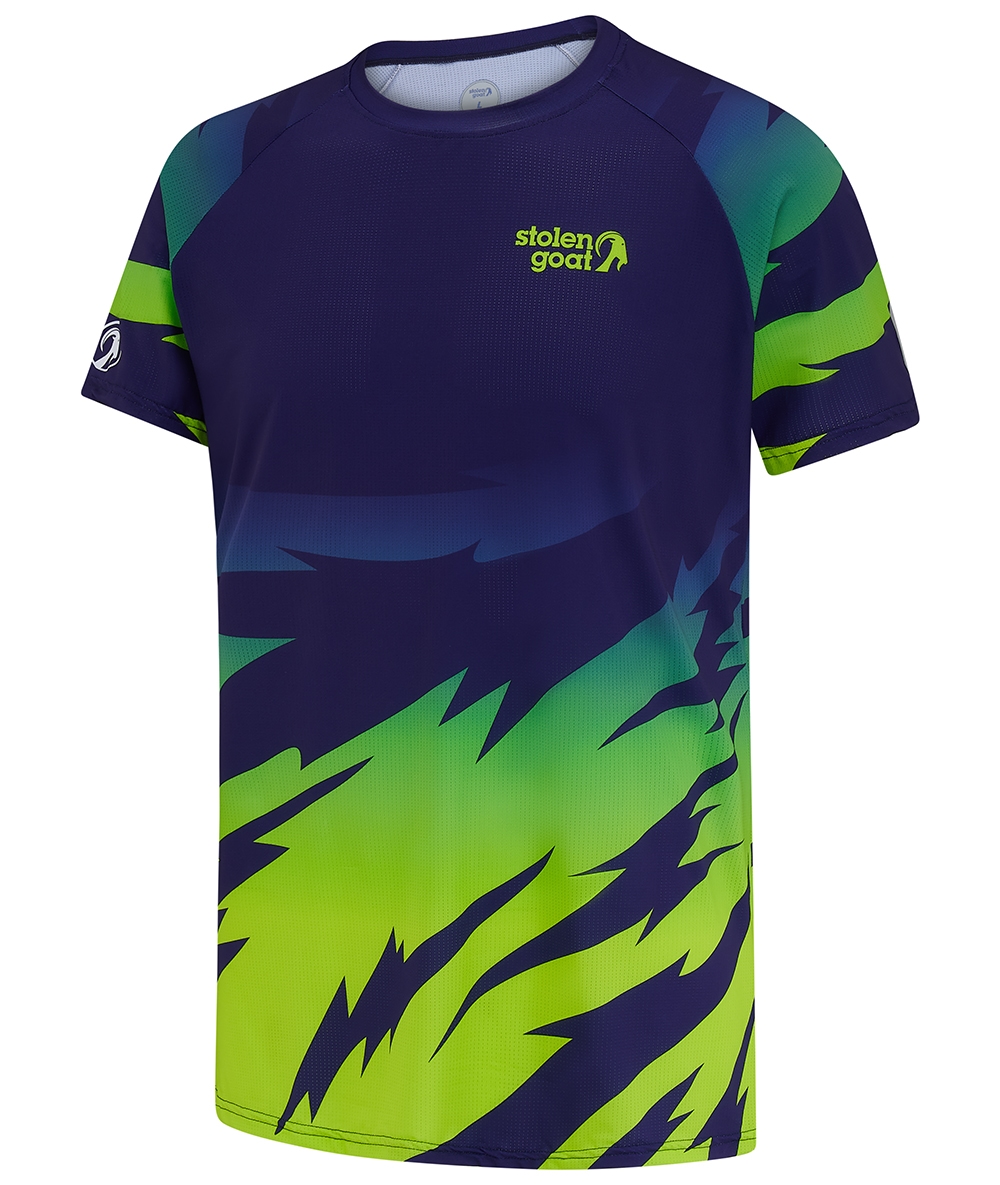 - Men's specific fit, fit's true to size (match your typical t-shirt size or Stolen Goat jersey size)