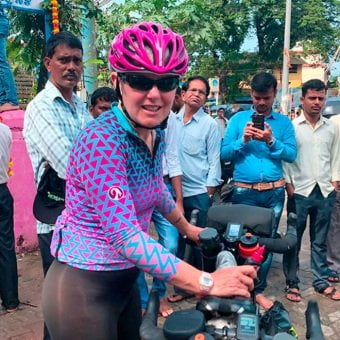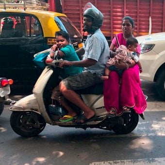 We set off early the next morning trying to avoid the worst of the Mumbai traffic as we headed into the heart of the city passing the slums made famous by the film Slumdog Millionaire. The riding was tricky. I should pause here to explain Indian traffic rules. The first rule is to ignore the rules. Pulling out – never look behind, let other people swerve to avoid you. Blow your horn, before you pass, whilst passing, after you pass, when you see two women on a bike and because you are a boy and you like blowing your horn. If your destination can be reached more quickly by driving/ riding on the wrong side of the road, do it. If you survive you will have saved a few minutes. Traffic lights are optional. Never dip your headlights – you can see better with them on full beam and the fact everyone else is blinded is not your problem. Don’t wear a helmet. Ensure you have as many people as possible on your motorbike, including a woman sitting side-saddle on the back and young children. If you break the rule of wearing a helmet yourself, make sure your wife and children are not – you don’t want them to pick up bad habits. Overtake as much as you can even if you plan to immediately pull in. Overtake especially on bends – if you blow your horn it will be fine. Ensure you are using your mobile phone whilst driving or riding you need to stay connected – don’t bother with headphones when riding simply tuck the phone under your chin – that will work. If you are a bus, no rules apply apart from driving as fast as you can irrespective of road conditions, overtaking all vehicles whether you have the room or not.