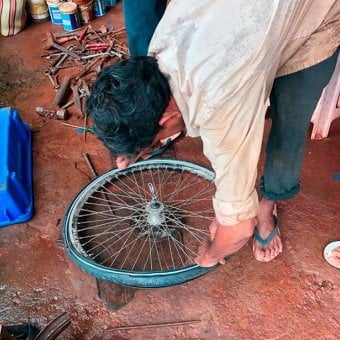 We were looking forward to getting to Goa and riding along the coast. Our first tyre exploded as we crossed the border into Goa and I got a ride on the back of a scooter to the local bike mechanic to see if it could be saved but, it was a write-off.